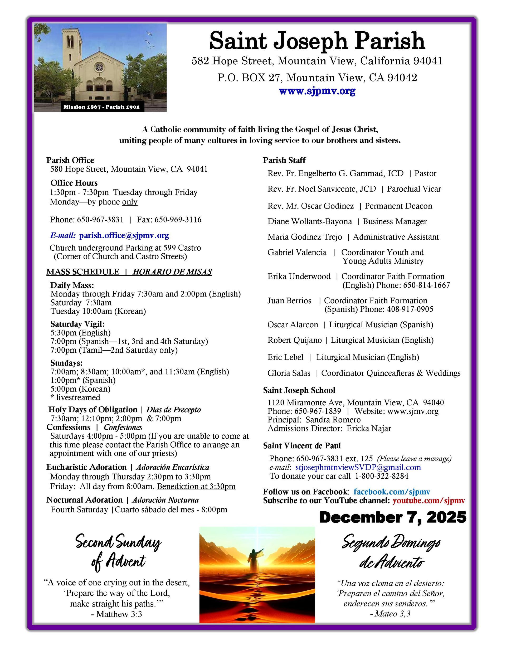December 8th - Solemnity of the Immaculate Conception (Holy Day of Obligation) | Solemnidad de la Inmaculada Concepción (Dia de Obligación)