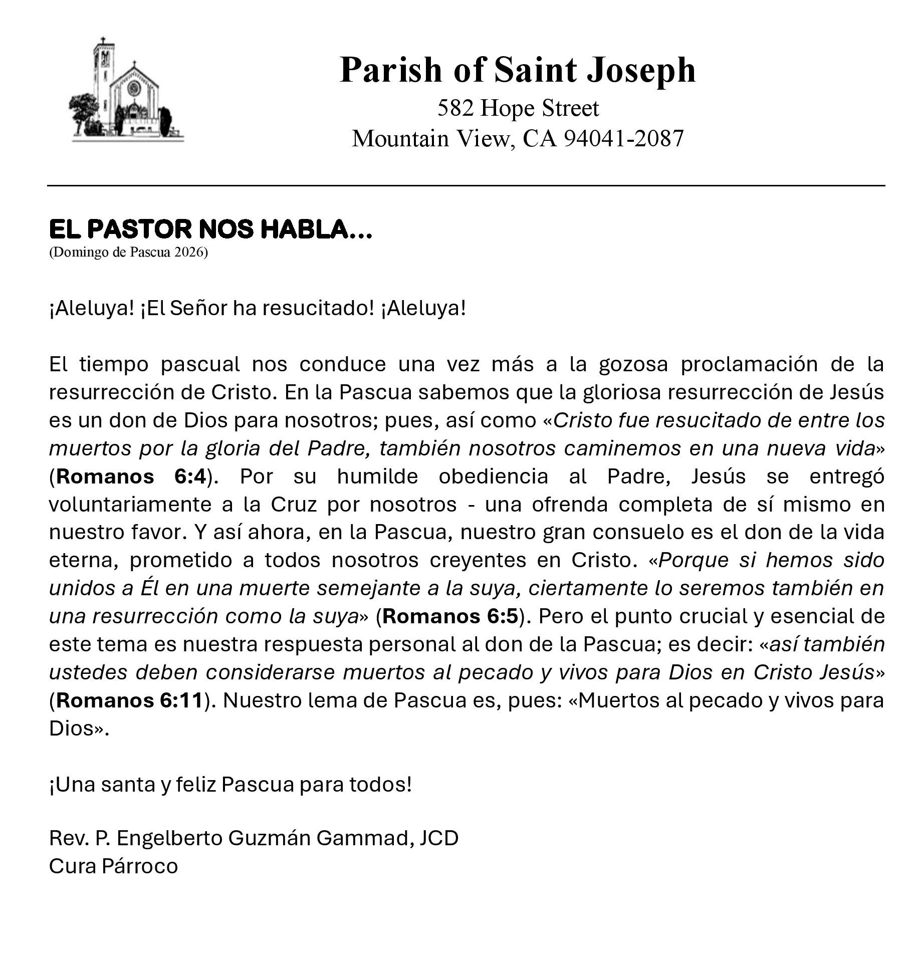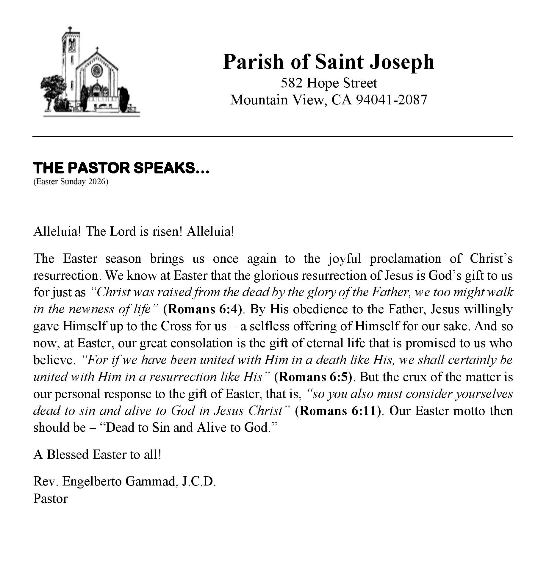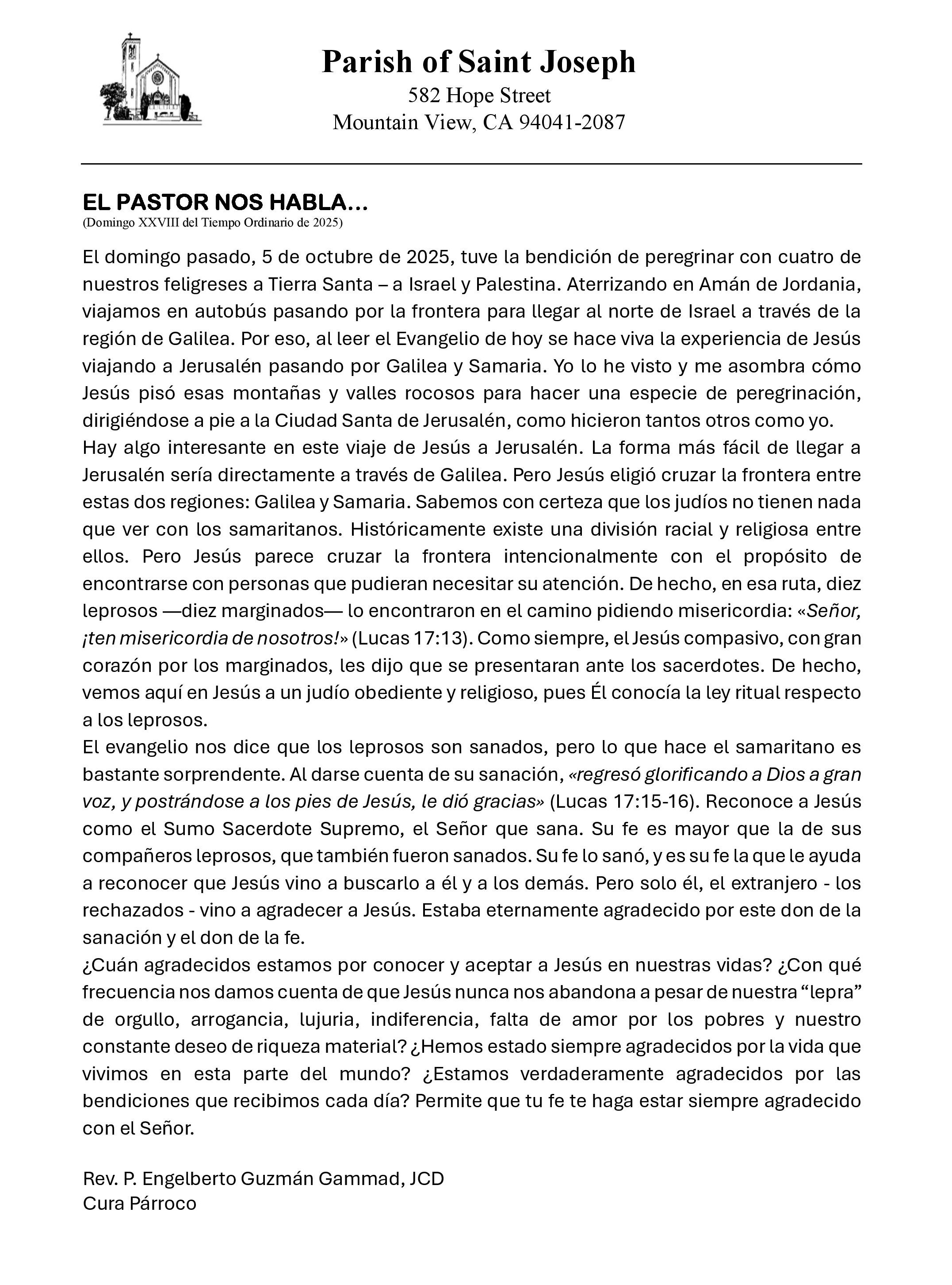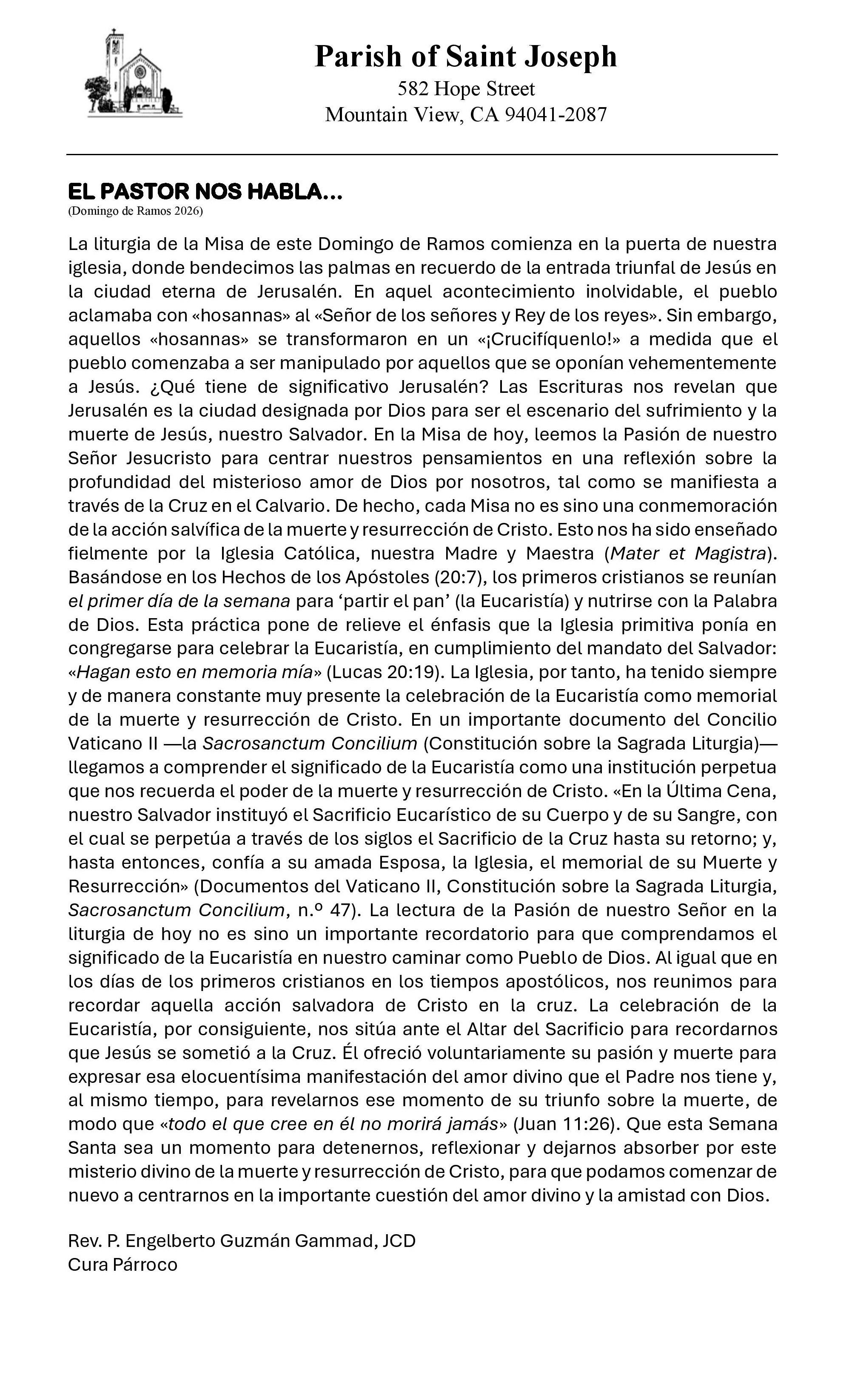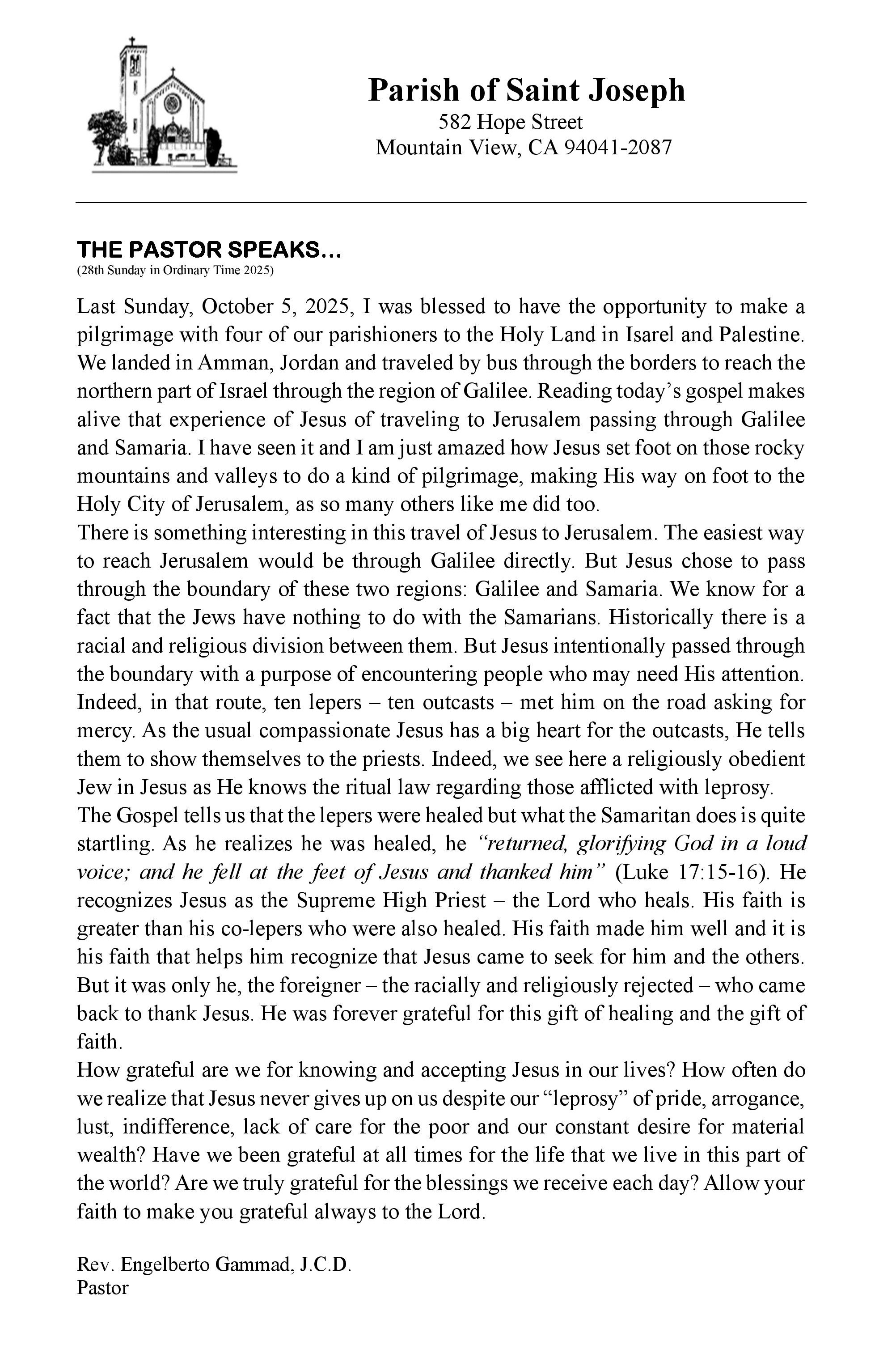Stay connected to what is happening at the parish. Download the most recent church bulletin containing, photos, stories, news and event information. Bulletins are also available in the church and at the parish office.