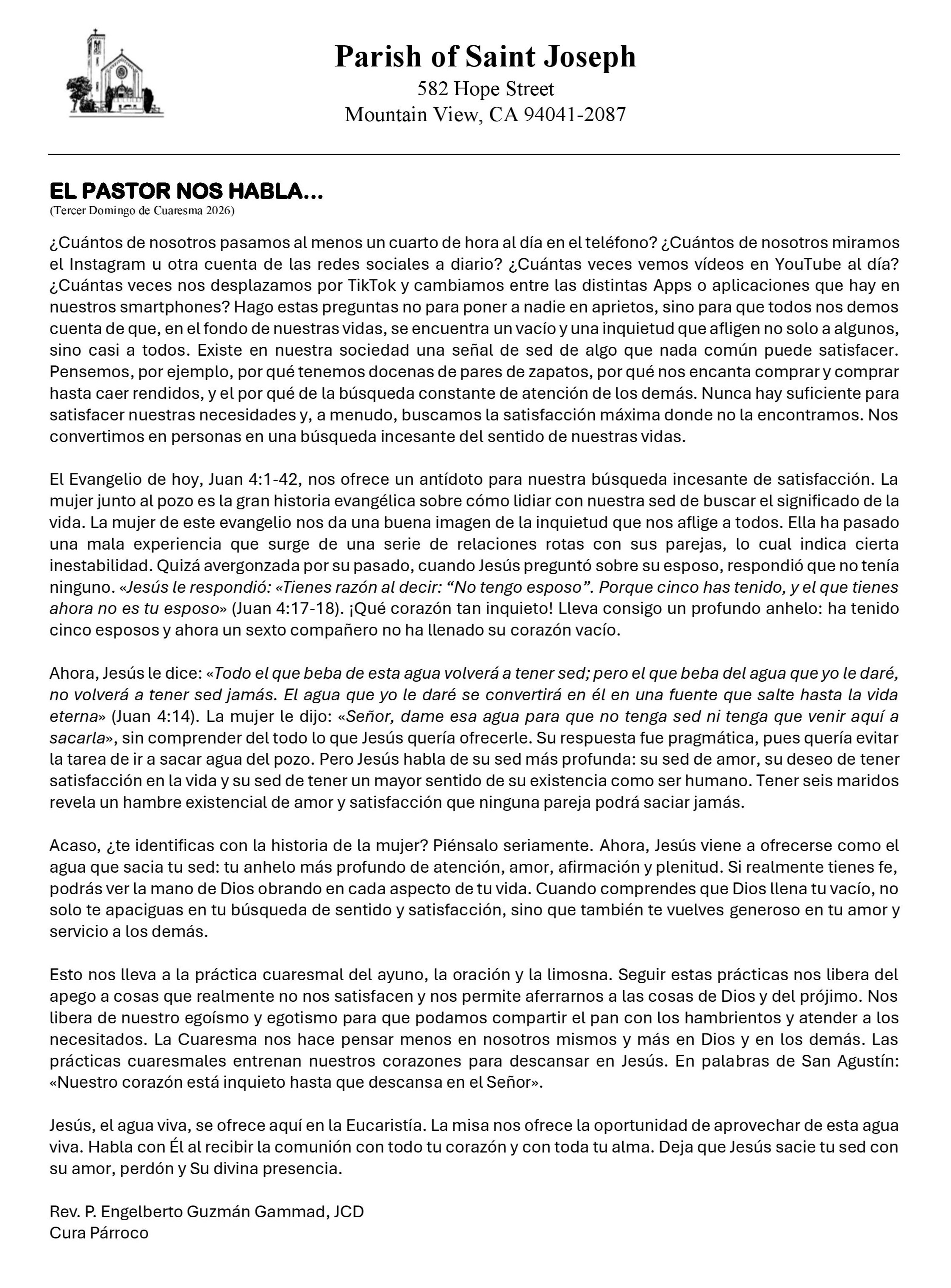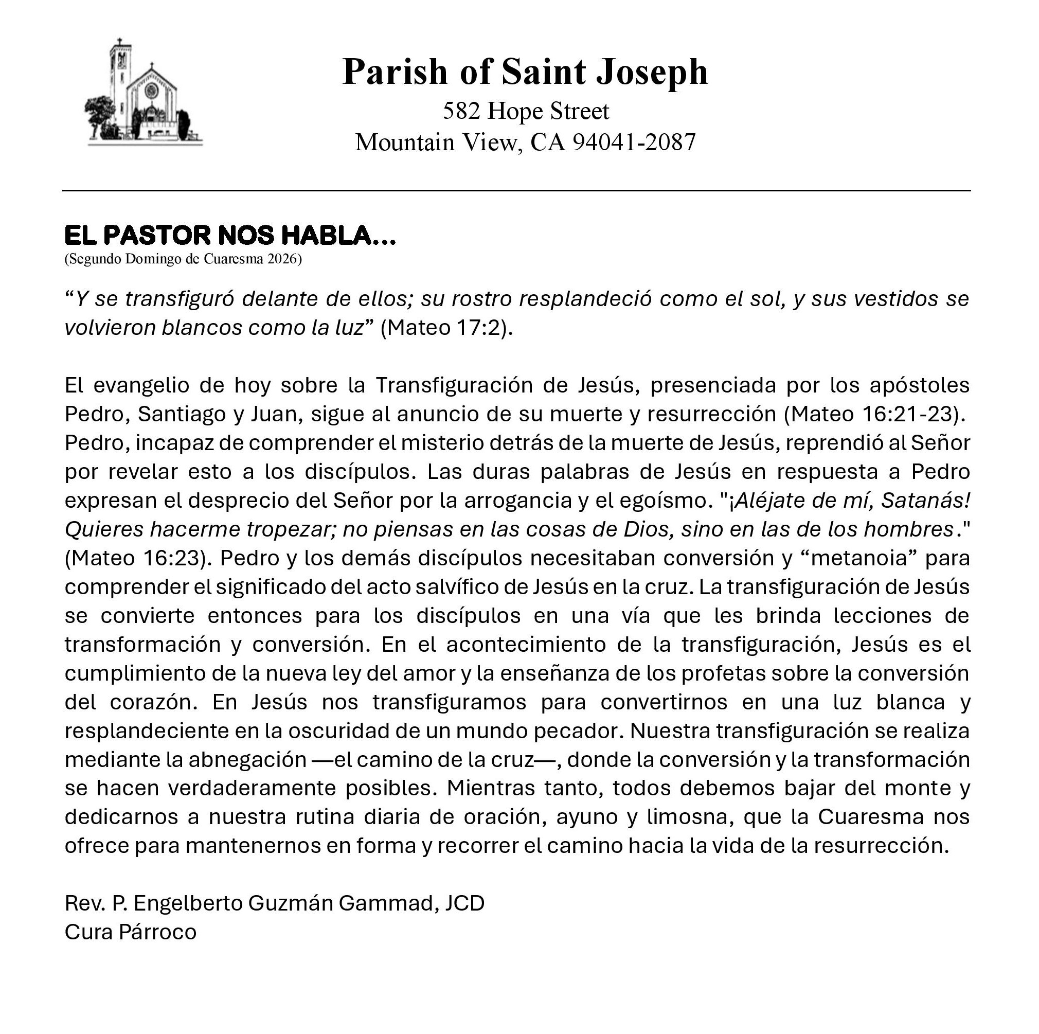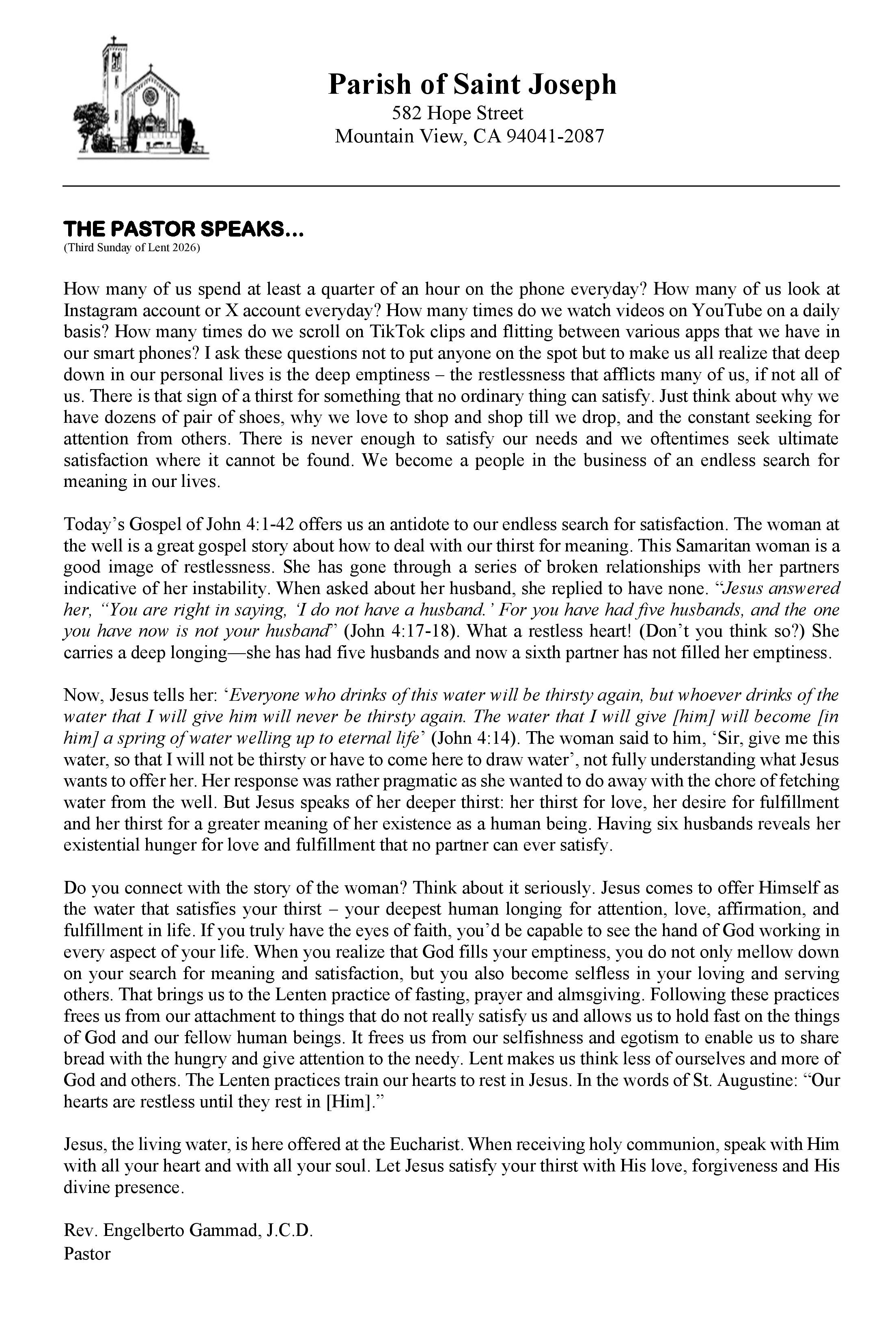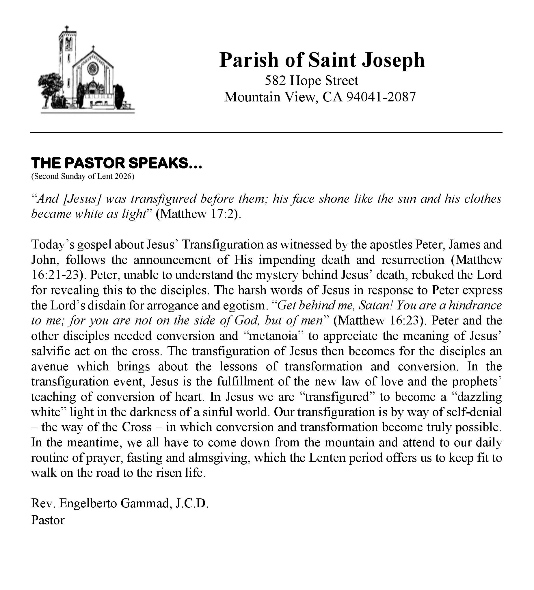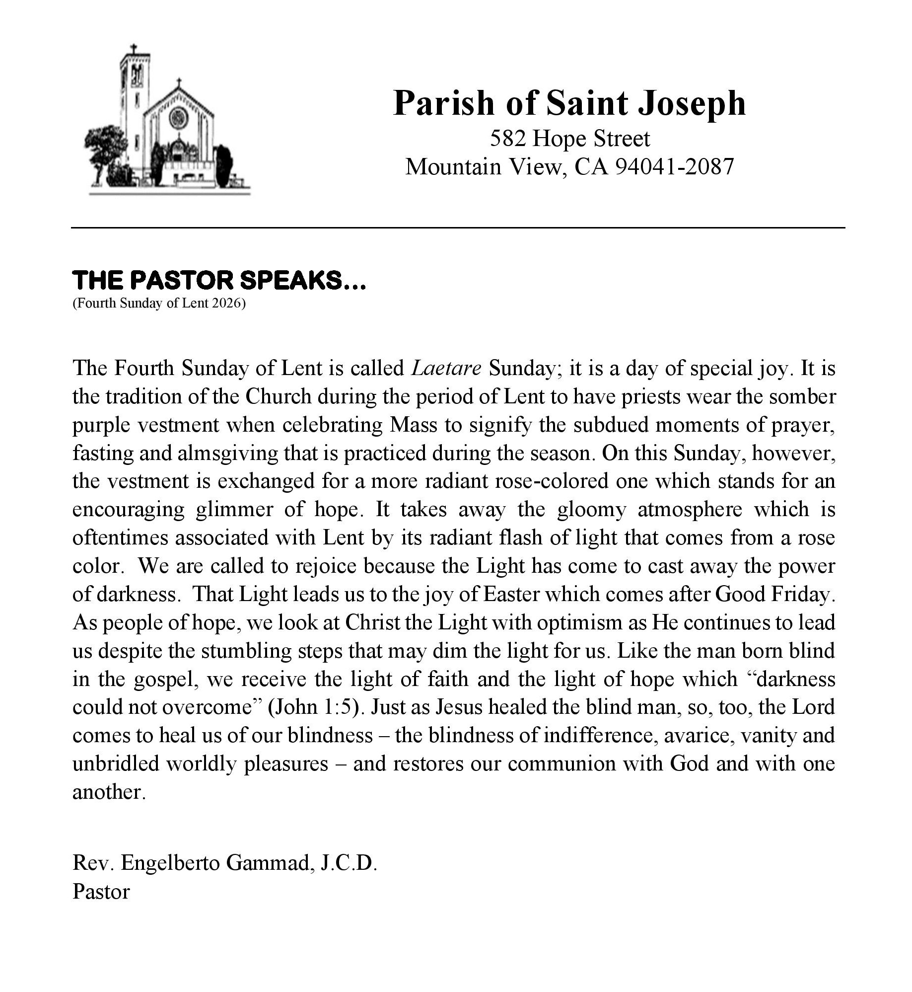 Stay connected to what is happening at the parish. Download the most recent church bulletin containing, photos, stories, news and event information. Bulletins are also available in the church and at the parish office.
