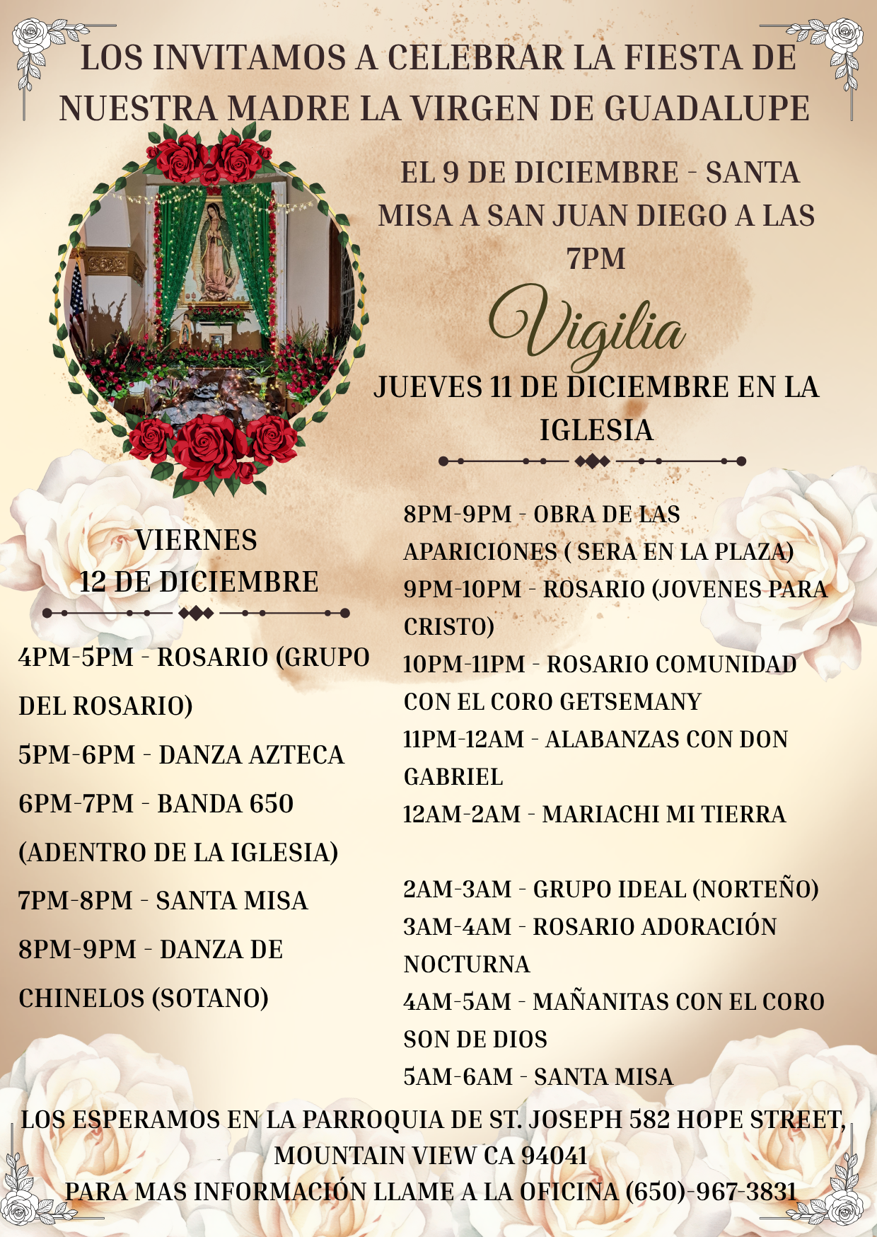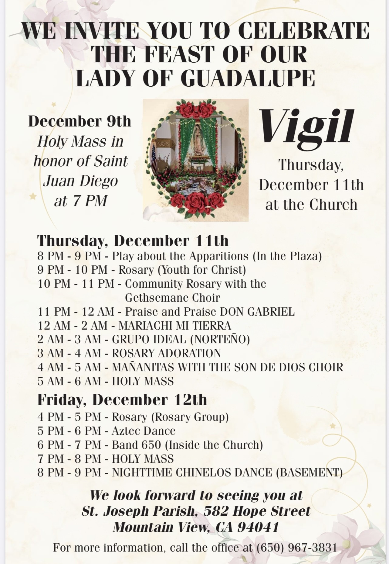 December 11th & 12th - Celebrations in honor of Our Lady of Guadalupe | Celebraciones en honor a Nuestra Señora de Guadalupe
