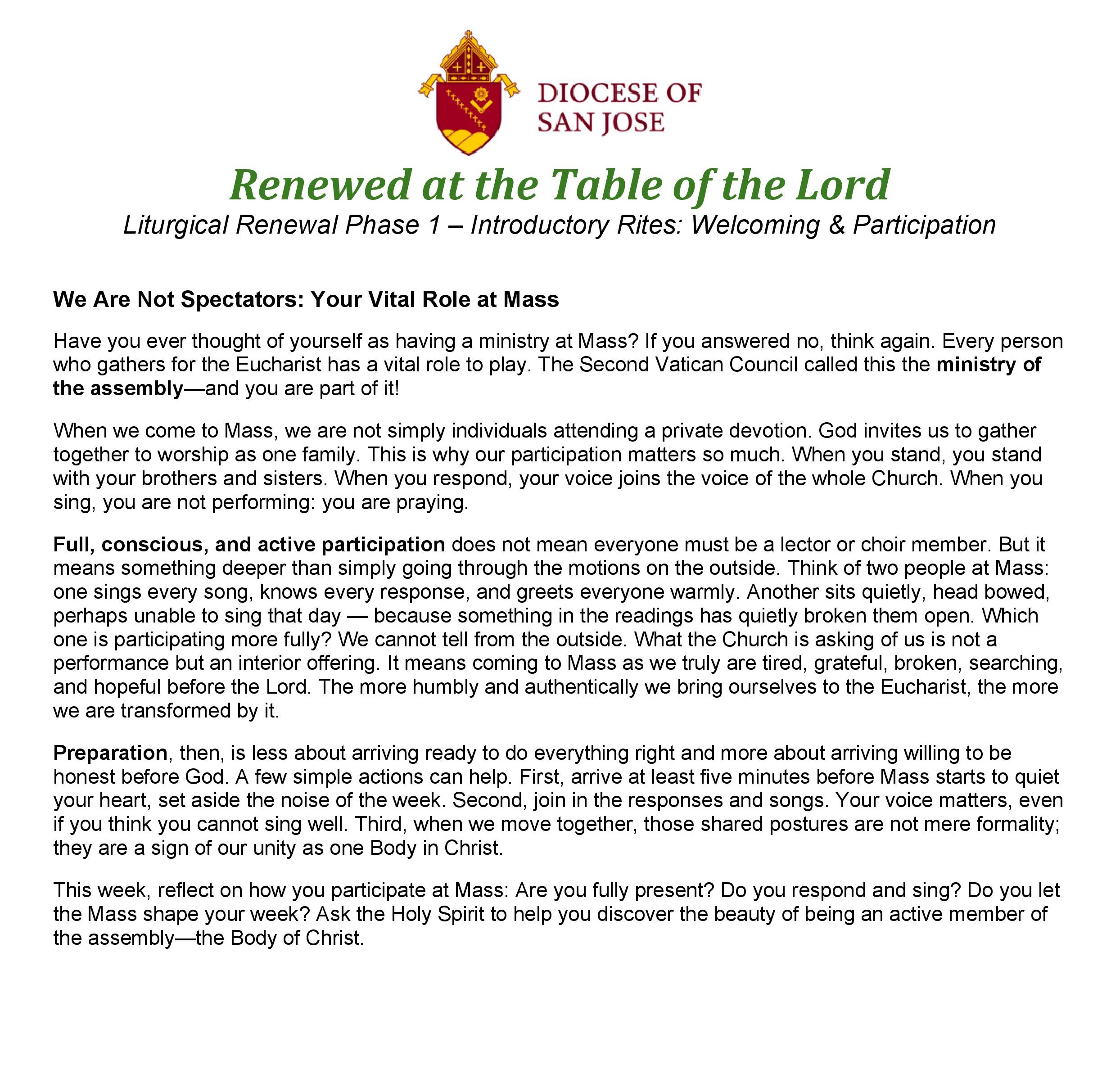 When we come to Mass, we are not simply individuals attending a private devotion. God invites us to gather together to worship as one family. This is why our participation matters so much. When you stand, you stand with your brothers and sisters. When you respond, your voice joins the voice of the whole Church. When you sing, you are not performing: you are praying. Read full article HERE