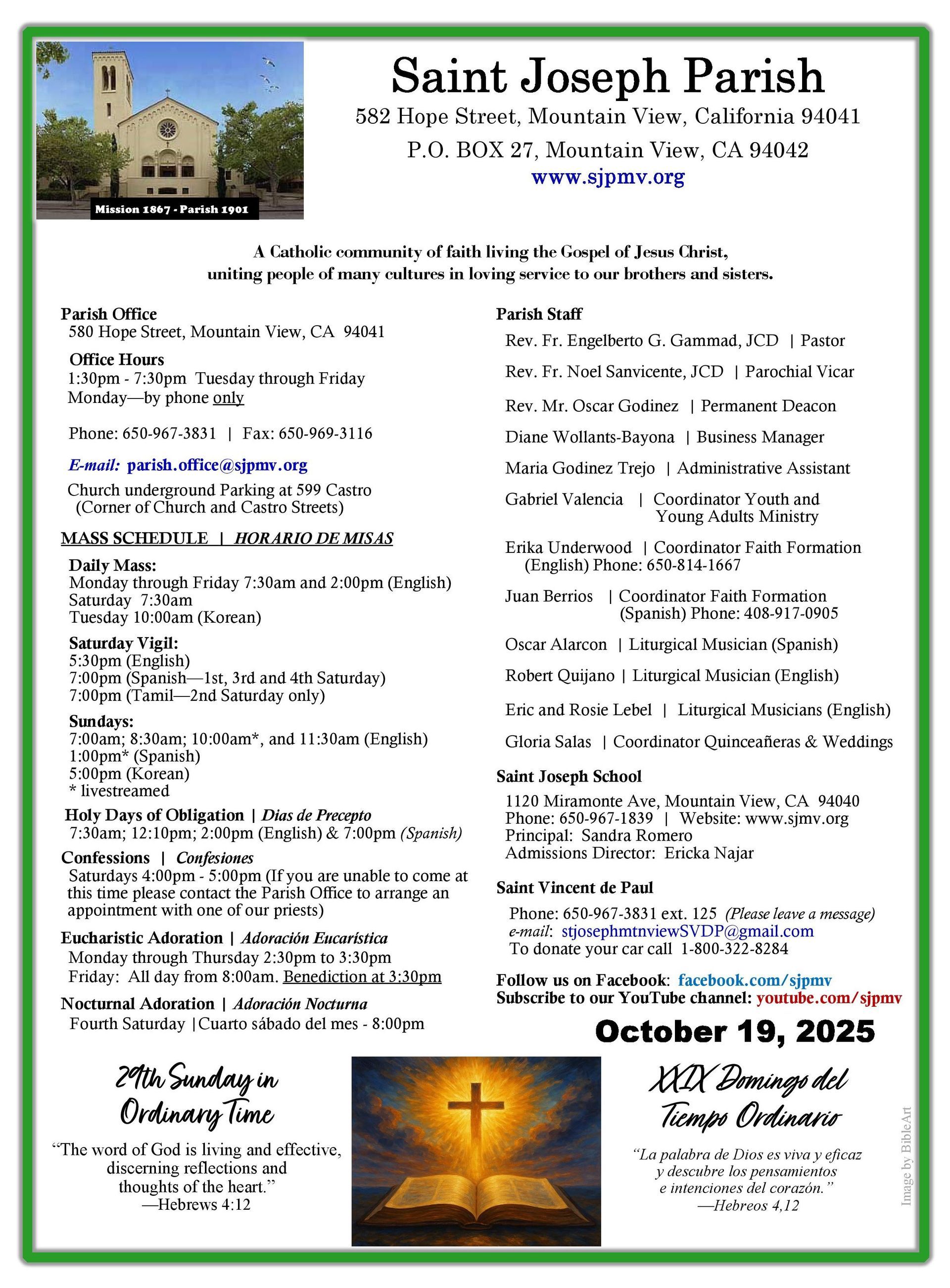 Registration is at the Parish Office, Tuesday through Friday, 1:30pm to 7:30pm. Please bring with you a copy of the student's Baptism certificate. Registration Fee: $100